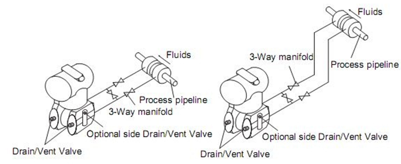 התקן את הקפסולה אנכית במידת האפשר. עבור יישומי DP, שמור על קווי אימפולס קצרים, שווים באורך ובעלי שיפוע נכון (נוזל: כלפי מעלה לכיוון התהליך; גז: כלפי מטה לכיוון התהליך).